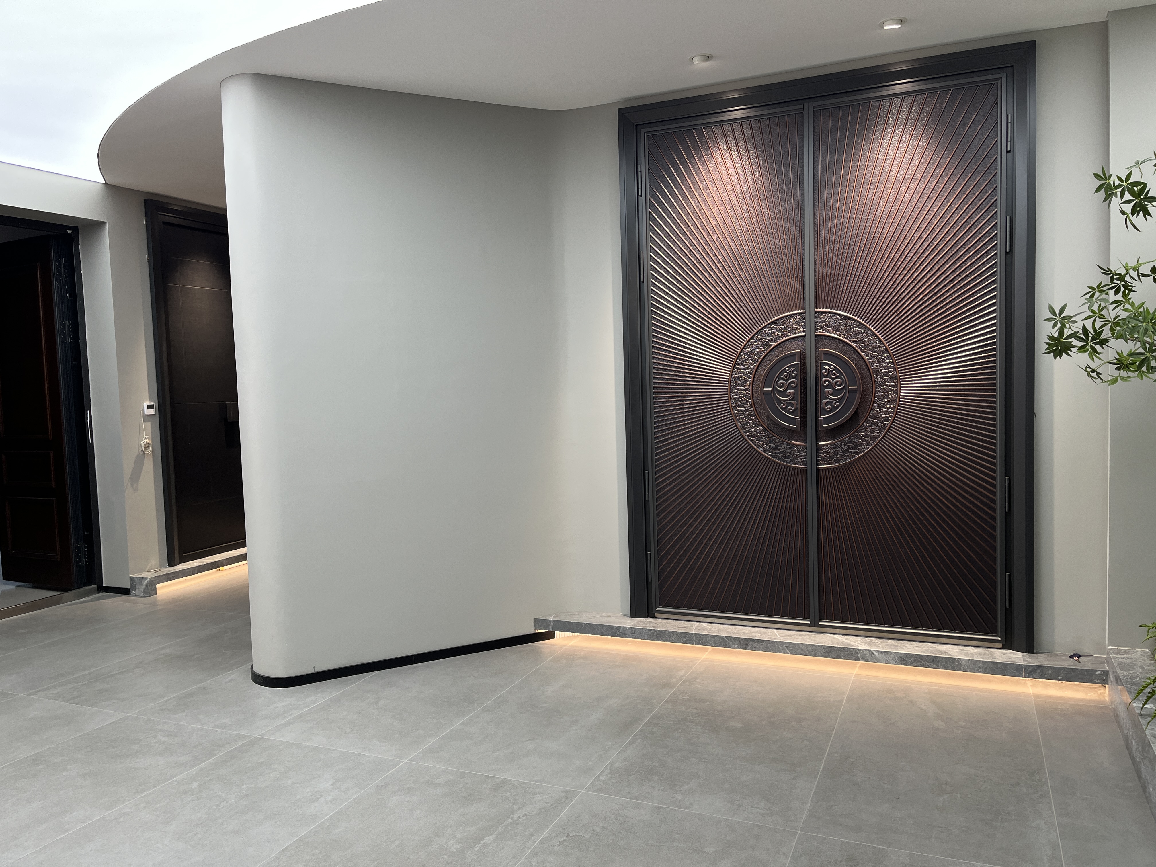 铜铝复合门配备了先进的锁具系统和坚固的结构设计,具有很高的抗破坏能力,能够有效防止盗窃和非法入侵。同时,门的密封性好,能增强防火、防水性能,为家居安全提供的**。